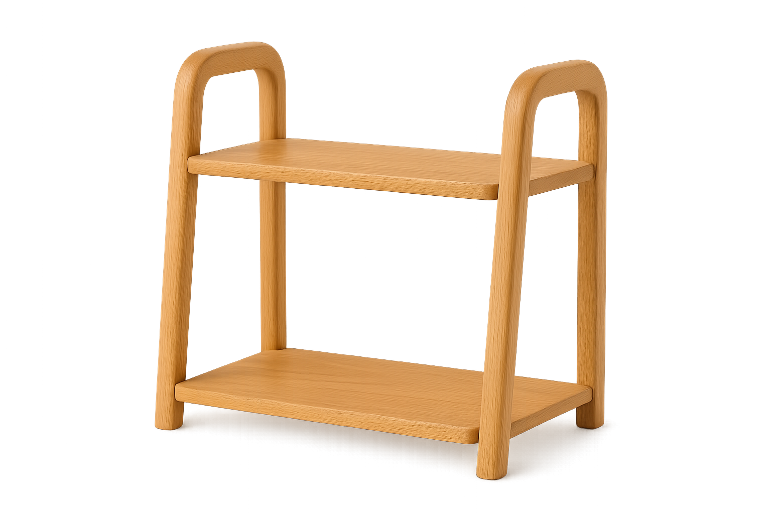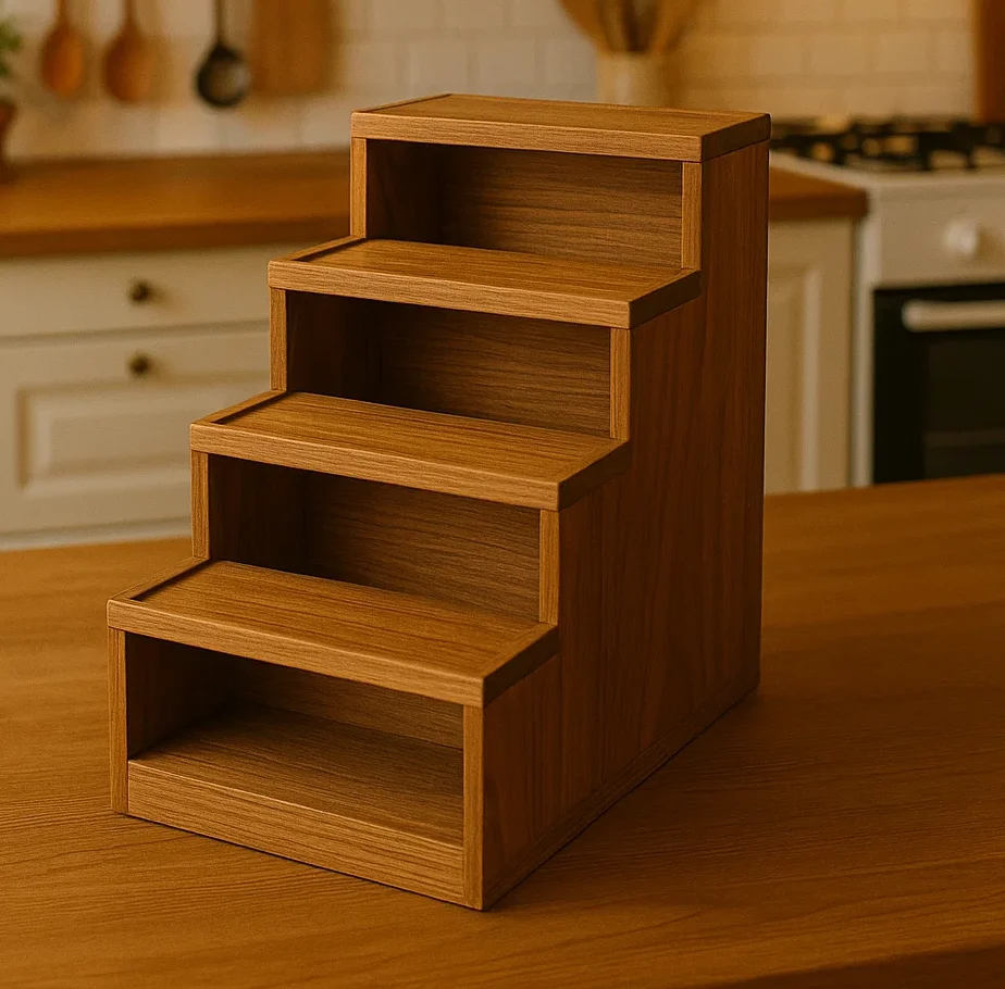 این استند چوبی دو طبقه با طراحی ساده و کاربردی، انتخابی ایدهآل برای نظمدهی به ظروف، ادویهجات یا دکوریهای آشپزخانه است.